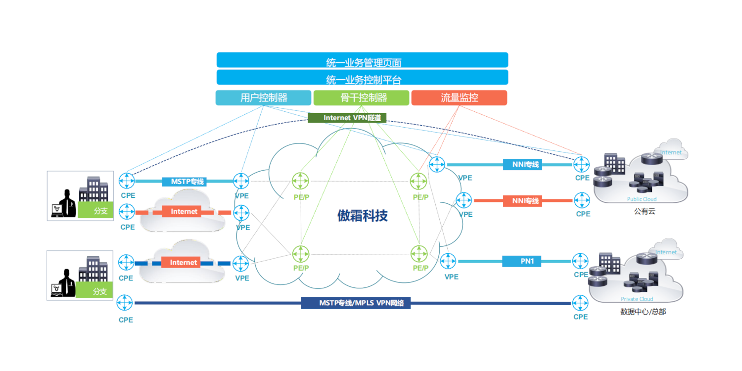 人工智能、VR、AR等新兴技术行业在应用、数据的统一管控上对网络提出更高要求,高并发数据联动传输时常拥塞、丢包,导致关键业务受影响,傲霜基于SD-WAN技术为人工智能等新兴行业实现大数据高并发处理与多云应用智能管控的融合解决方案