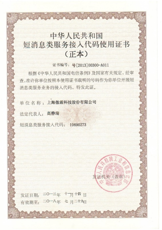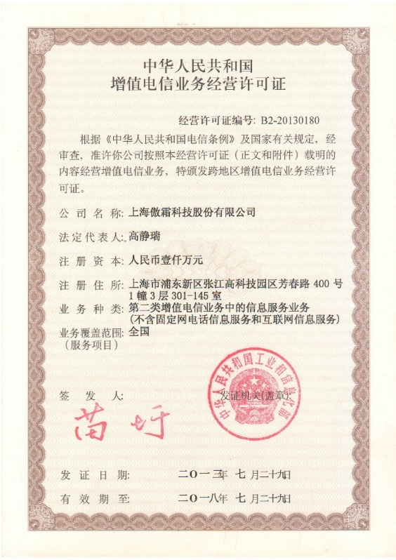 2013年8月, “傲霜科技”在上海股权托管交易中心成功挂牌(股份代码:100062)。